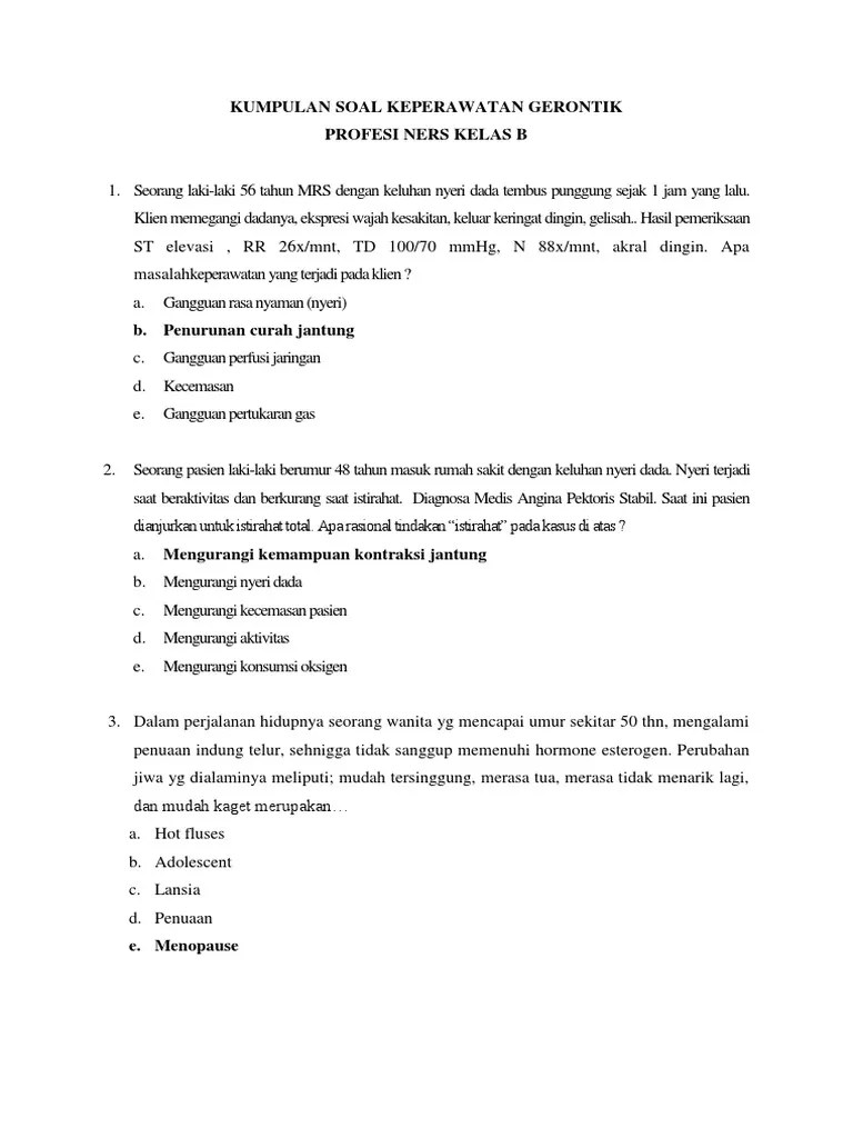 Proses keperawatan mulai dari pengkajian, diagnosa keperawatan, perencanaan,. Contoh kumpulan soal kasus keperawatan gerontik. Gambar 1.3 stria gravidarum (stretch marks) pada abdomen ibu. Mungkin dapat menimbulkan masalah tetapi belum ada. Soal latihan uji kompetensi (ukom) 2017, keperawatan medikal bedah, sistem pernafasan ini bertujuan.